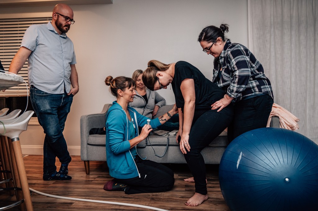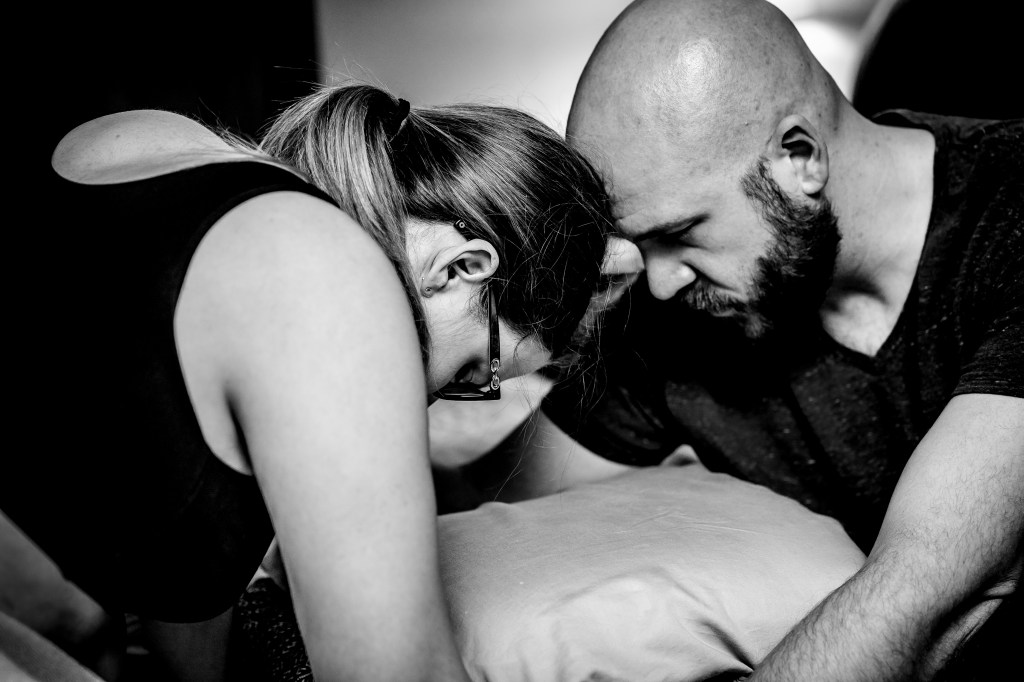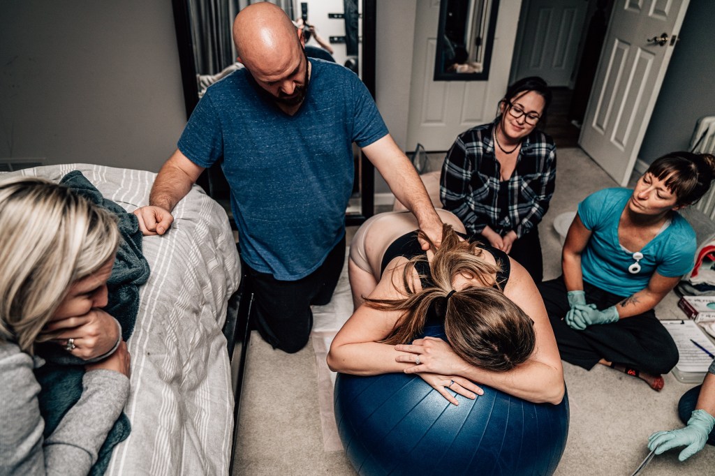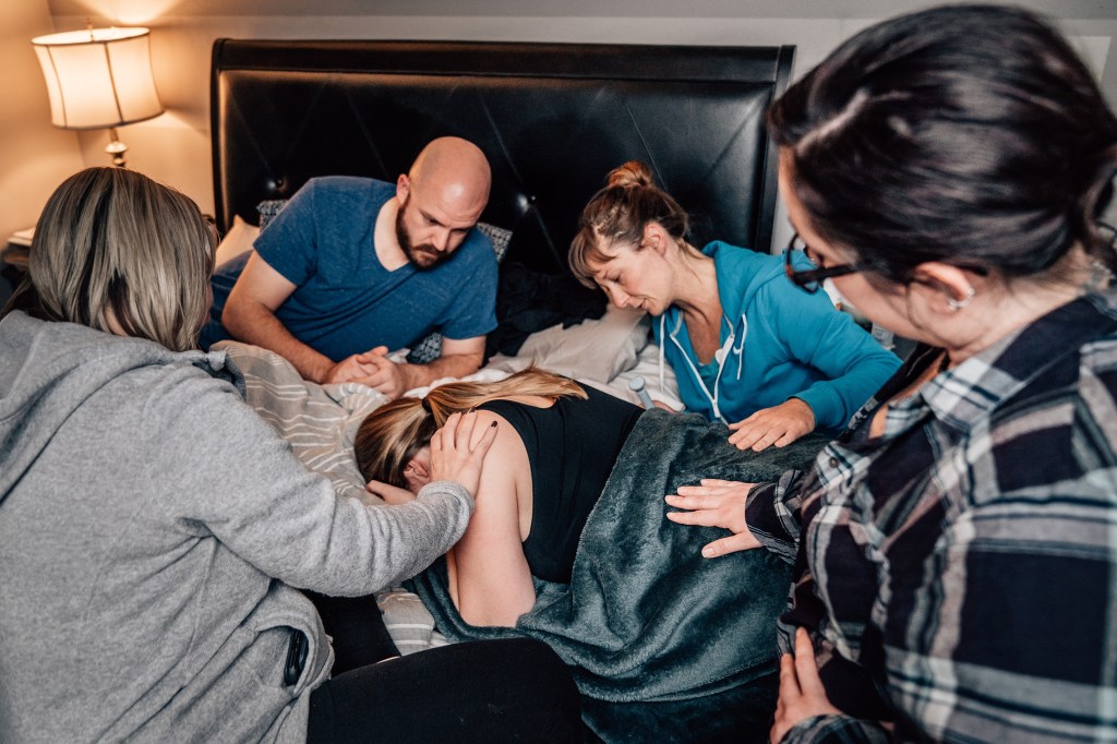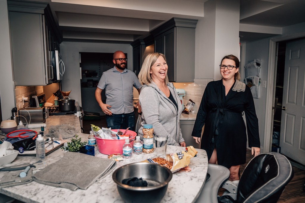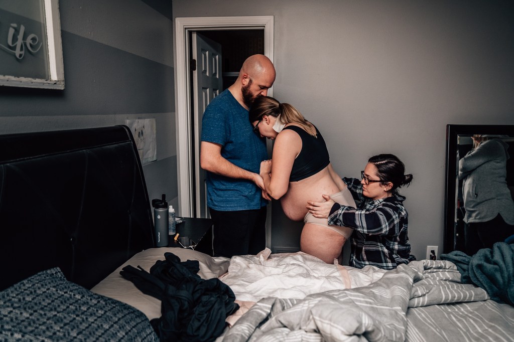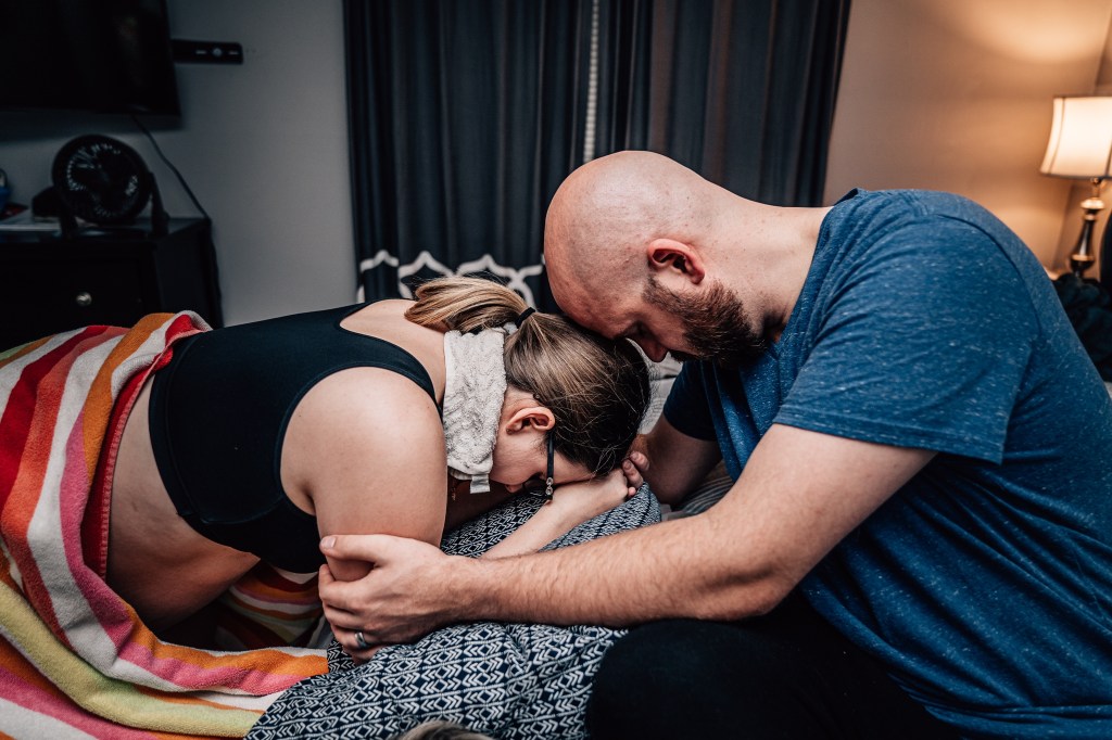 After getting out of the tub and walking a few labs around my house, Jen suggested we head upstairs to get some rest, not knowing what the night might bring. It was around 9:30 pm and they said they’d check the baby’s heartbeat every 30 minutes, but to take a nap in the meantime. To be honest, I was a little defeated as I trudged upstairs. I felt like if I laid down, the contractions would slow and everyone would go home, leaving me to feel like I was a burden for calling the team out too soon. Nothing had changed by the first check-in. Contractions 90 seconds-2 mins apart, lasting 1:15. I rolled over to my right side. 30 minutes later, Andi came in. Still the same. Contractions same spacing, same intensity.