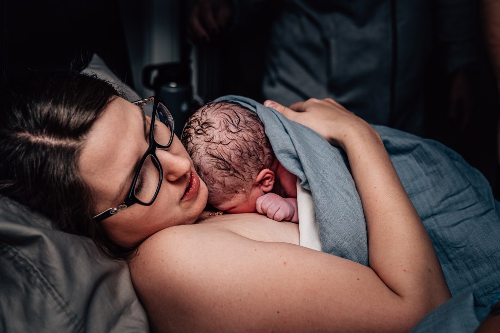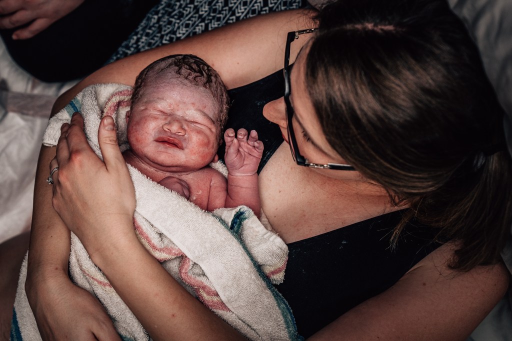 At one point, we attempted to get me to lay on my side and I started shouting, “No, I don’t like that! Sorry, I don’t mean to yell at you, but I really don’t like that!” That was the moment I knew I was stuck. I wasn’t going to make it downstairs. I was going to have a baby on my hands and knees on my bedroom floor. No birthing pool to take away the pressure. No twinkle lights for ambiance. No perfectly cleaned, spacious living room. Instead, I was going to meet my son in a room with laundry piled in the open closet, clutter atop the dresser, and stains on the carpet. It wasn’t perfect. It was messy and real and raw and the most honest reminder that birth is just that. It’s the stripping back of everything else and focusing on one thing – bringing another human into the world. And the beauty of birth is found in the vulnerability of it. There is power in the letting go.