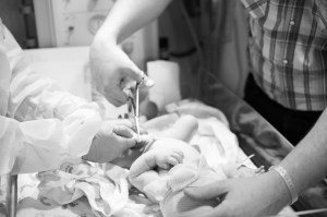 I had come into the hospital at 5 cm dilated and about 75% effaced thanks to my pre-term labor 3 weeks prior. At 12:30 pm, my nurse came in to recheck me and my contractions had just begun to become consistent at about 3 minutes apart. They weren’t painful, I just felt them as pressure more than anything. We decided to wait on the cervical check and give me a little more time to move things along.