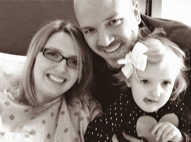 I woke Smitty up and we both started getting all of our final things together. I called my family and told them it was “go time!” so they could get on the road as well. We woke Adelyn up and headed into the hospital – our last trip as a family of three.